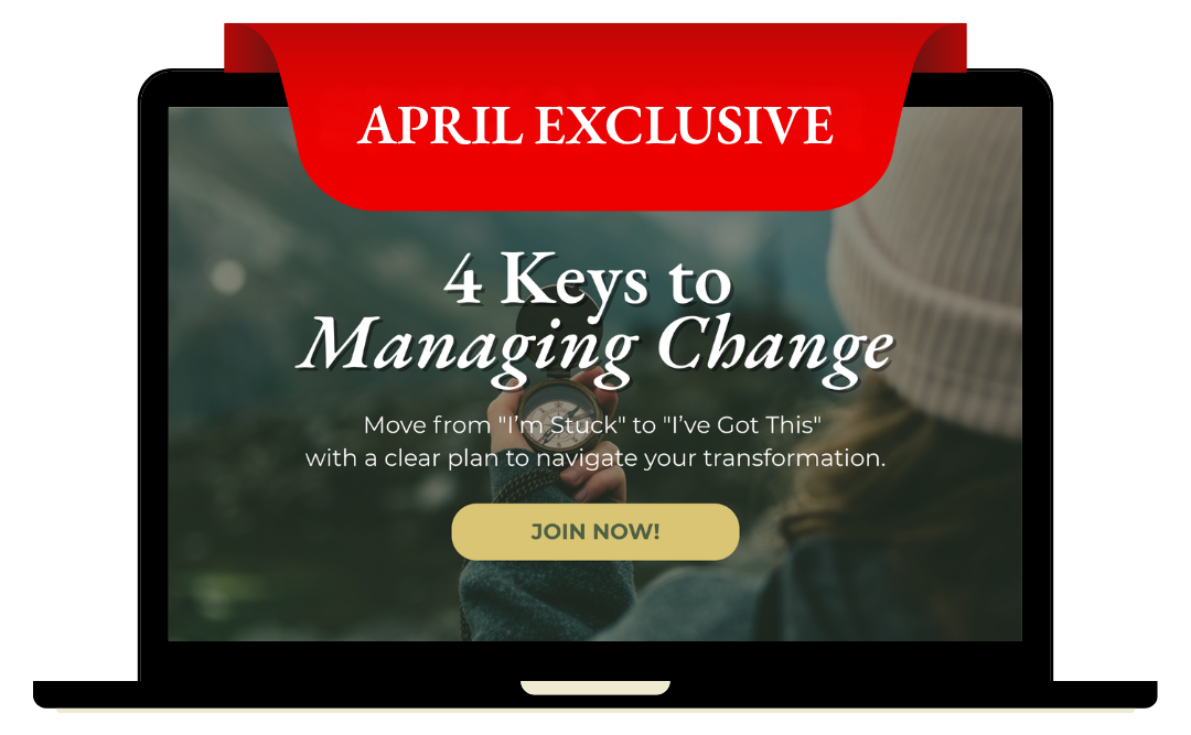 In this targeted mini-course, Kim walks you through the 4 Keys to Managing Change. This isn't a long, academic study—it’s a breakthrough roadmap designed to get you out of the fog and back into the driver’s seat of your own life in record time.
