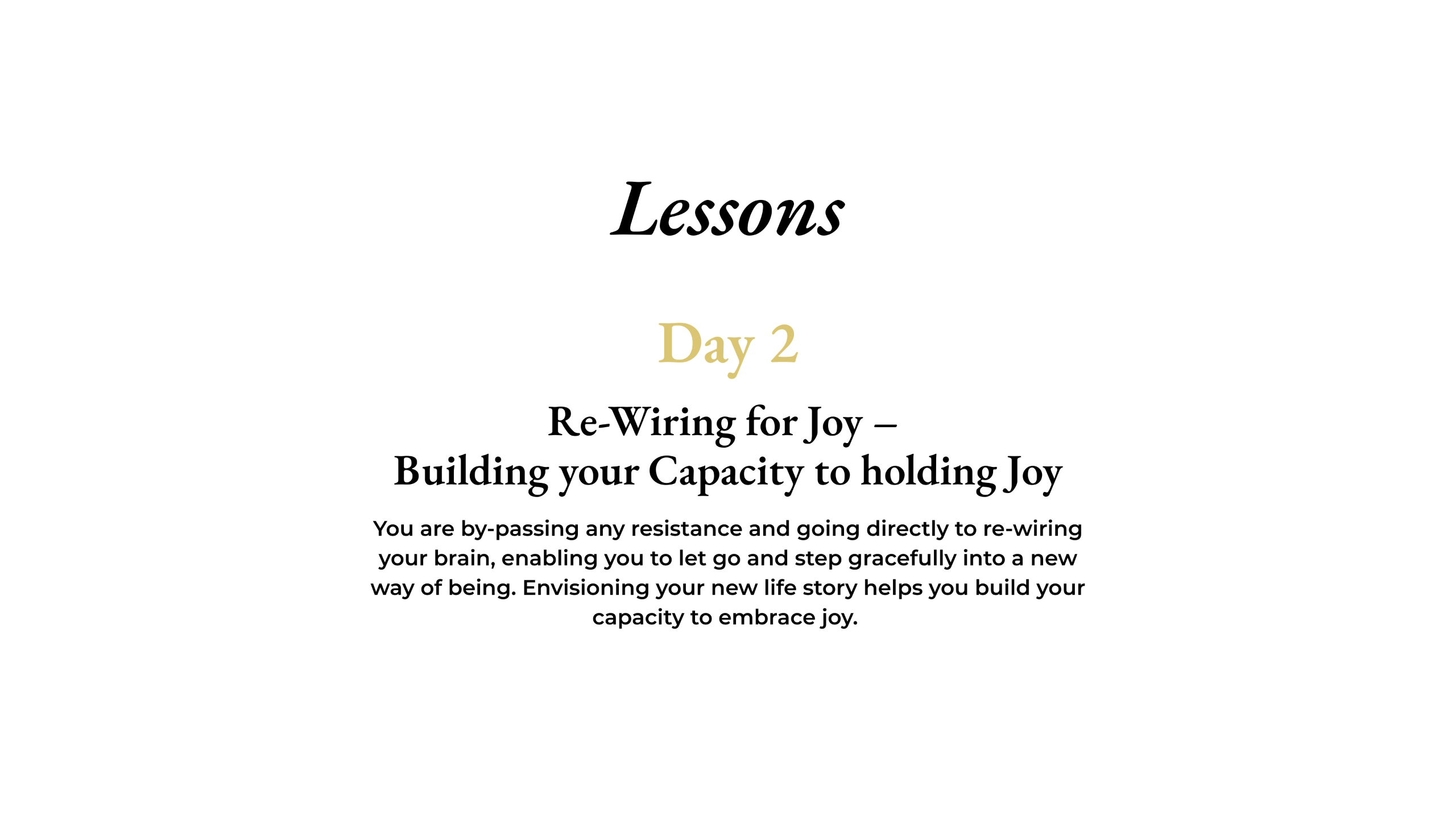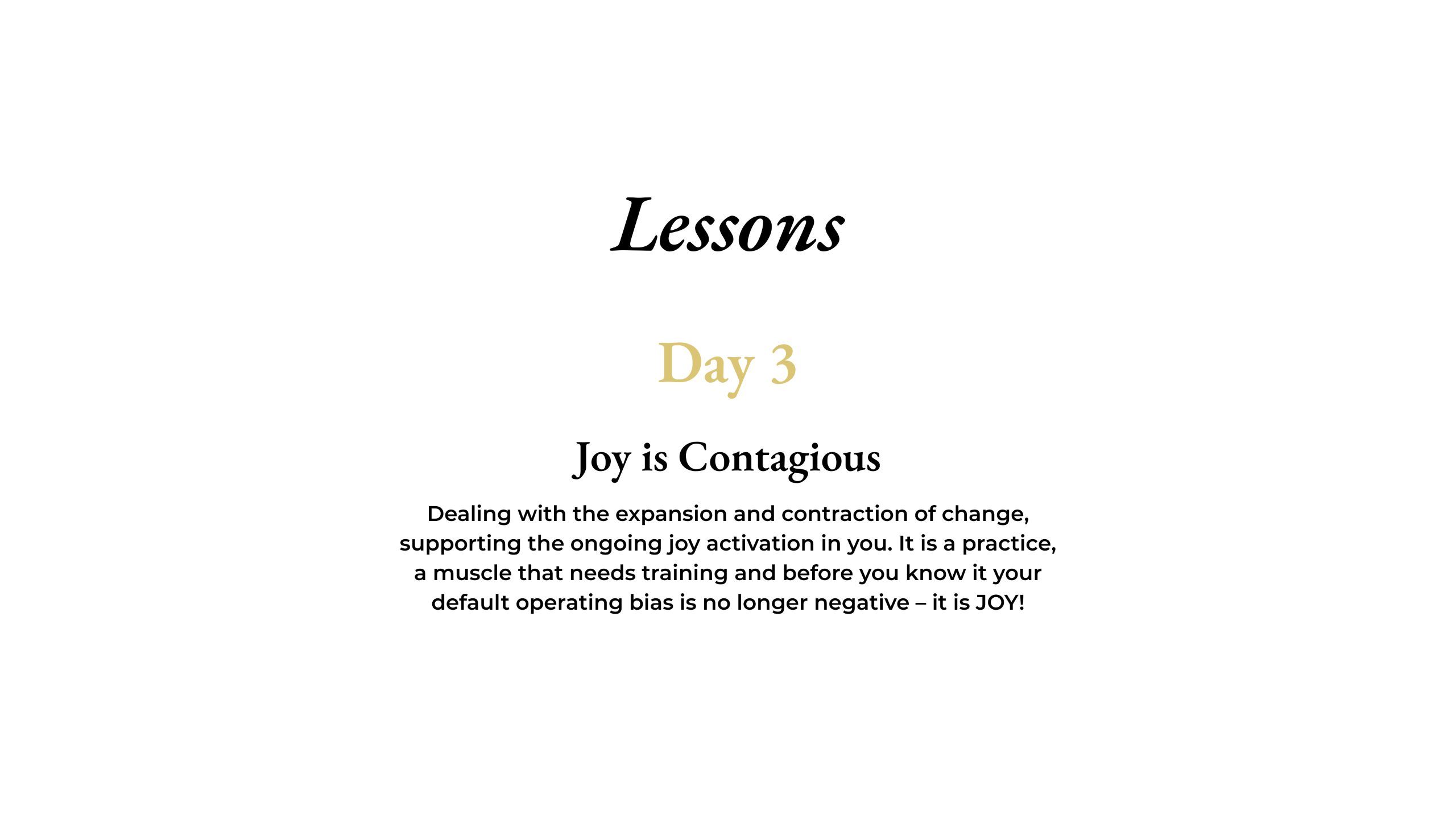 The course runs for three days, a recommended 15 minutes per day or as much as you like. Each day you will receive a video lesson outlining the topic and supporting activities. Short and easy to do when appropriate for you in your day. It is recommended you view your video lesson first thing in the morning, allowing you time to reflect and commit to the appropriate time to complete your daily activity.